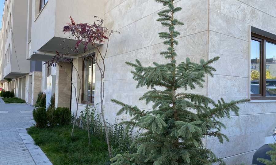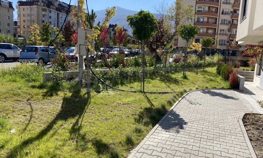 Жилищният комплекс с РЗП 6 000 кв.м не е ограден и стои свободно до съседните блокове на парцел с площ 2 086 кв.м. Сградата граничи с малки тихи улички и озеленени площи, скрита от шума на близките булеварди.