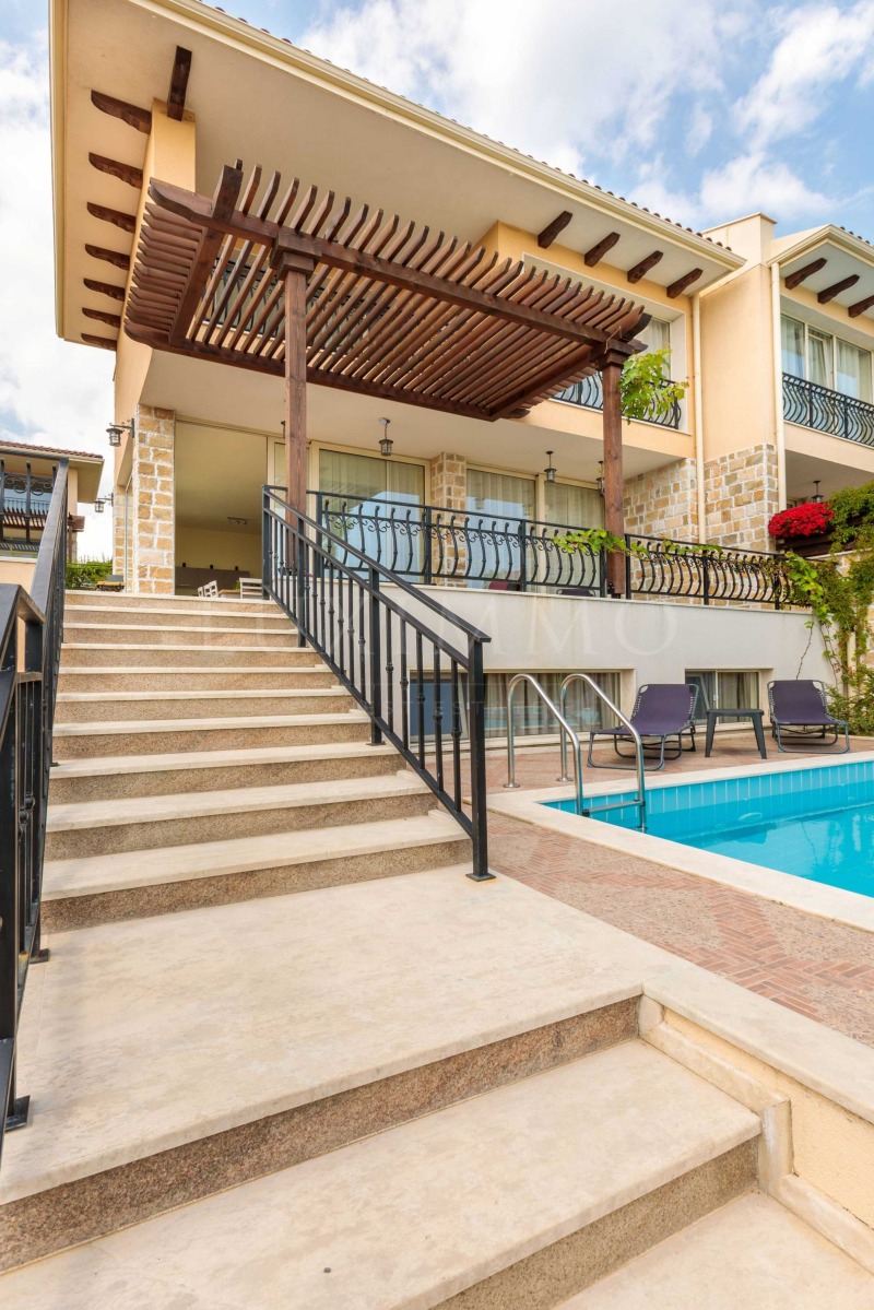 Представяме Ви напълно обзаведена двуетажна къща тип дуплекс в средиземноморски стил, със самостоятелен басейн и с прекрасна панорама към морето, разположена само на 200 метра от плаж Корал и Мечата дупка и на 10 мин. от центъра на морския курорт Лозенец.