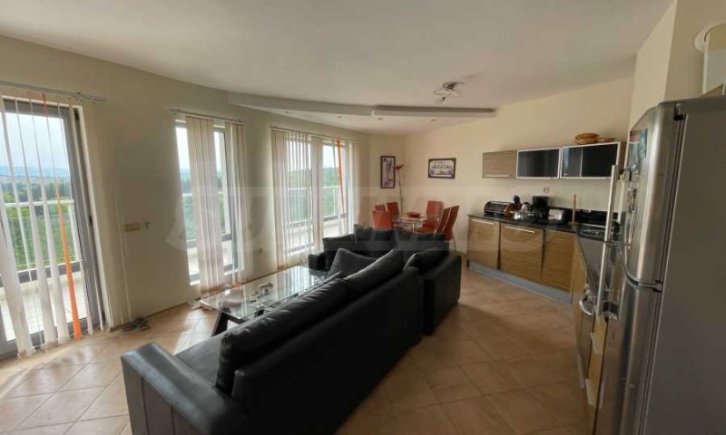 Имотът с обща площ от 117.93 кв.м е разположен на 4-ти етаж от 4. Състои се от дневна с кухня, спалня, баня с тоалетна и голяма тераса с панорамна гледка към морето.