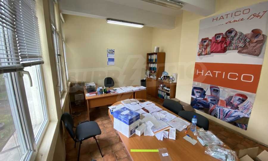 Първи етаж - производствен цех, два офиса, съблекални, санитарен възел и стая за почивка.