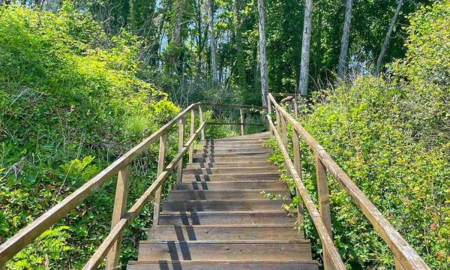 От терасата се открива гледка към гората.