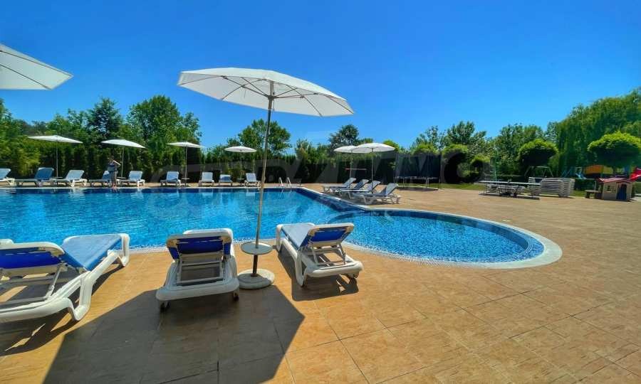 Комплексът разполага с красива градина, басейн, открит паркинг, целогодишна охрана, детска площадка и множество удобства. Ситуиран е на метри от плаж с директен достъп.