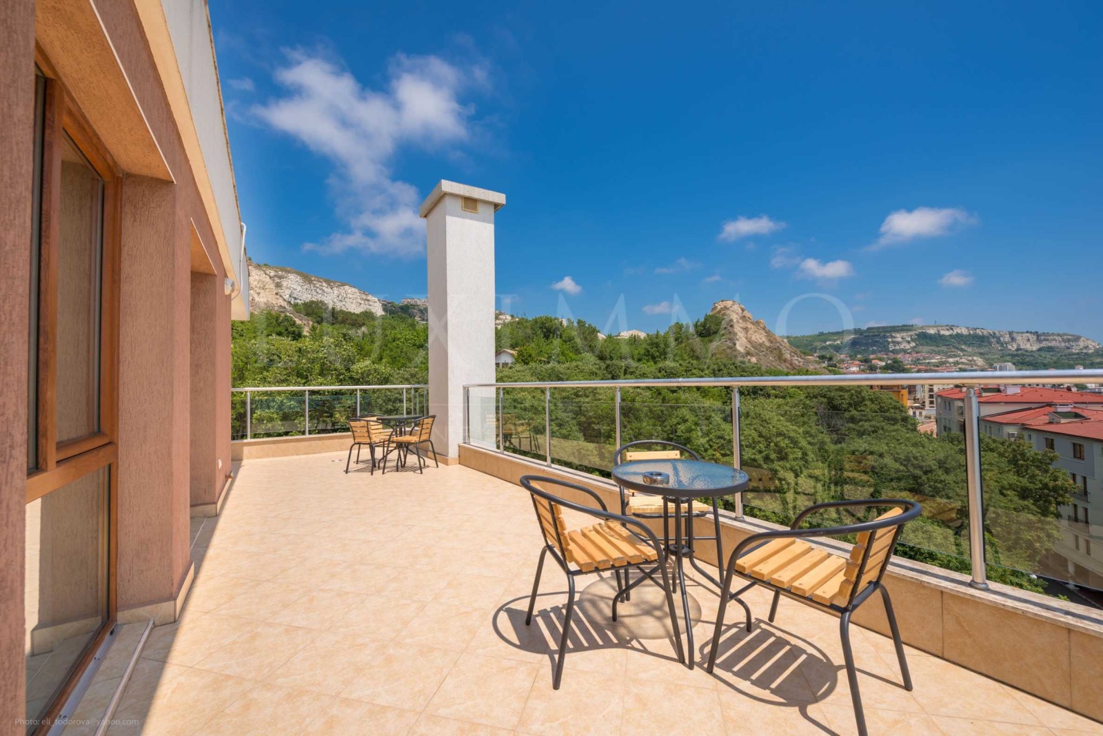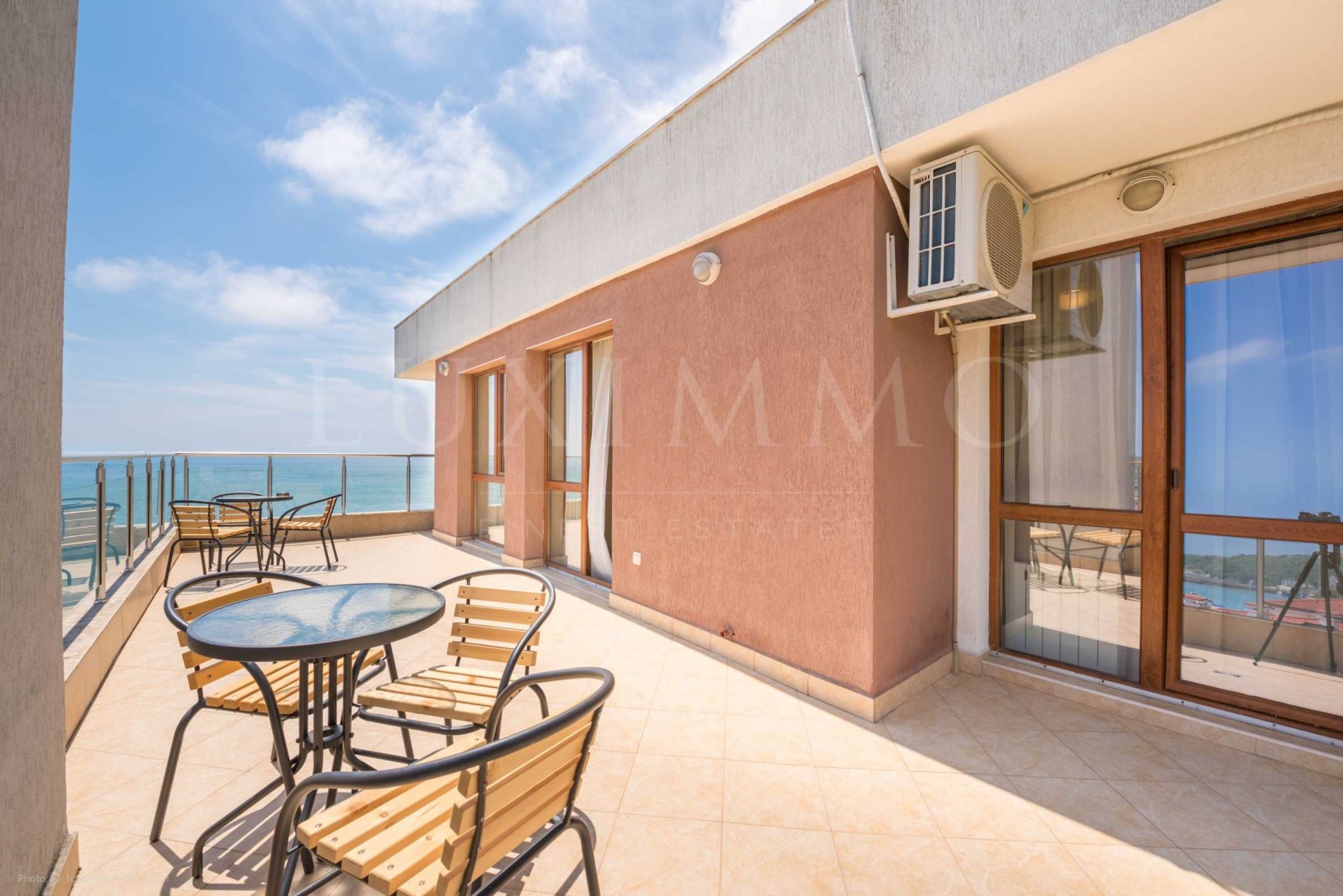 Огромна тераса със спираща дъха панорама към цялата крайбрежна алея, марината и двореца на Кралица Мария;