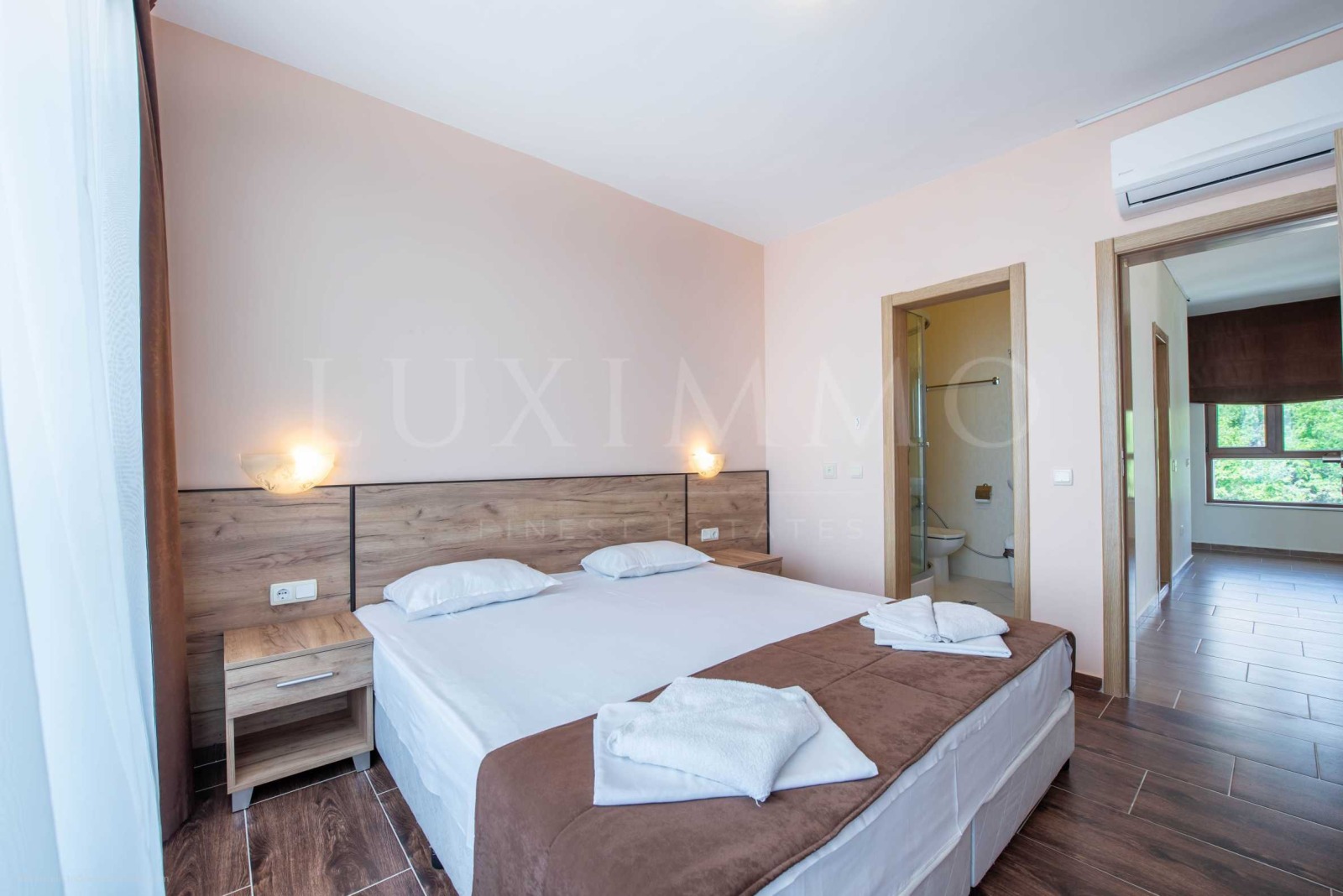 Първа спалня с кинг сайз легло и директен достъп до терасата на апартамента;
