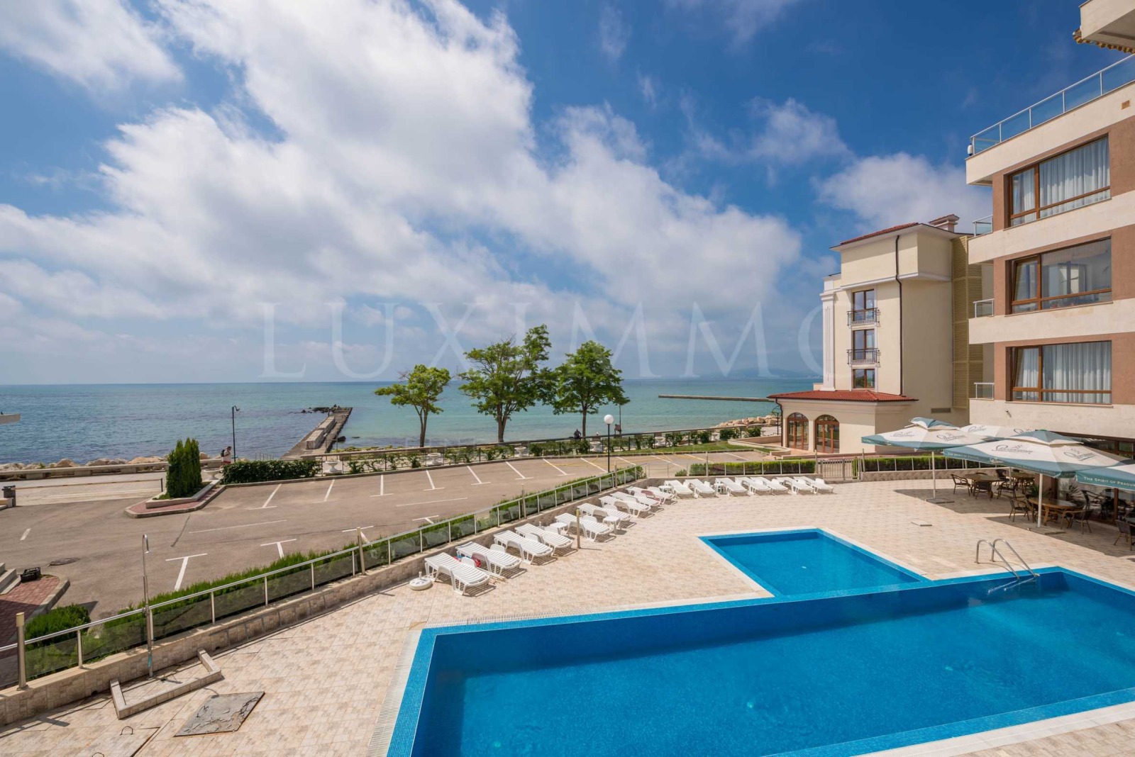 Комплексът се намира на метри от брега и е с директен достъп до крайморската пешеходна алея. Световно известната Ботаническа градина и двореца на Кралица Мария се намират на 400 метра. На 100 метра от комплекса има малък плаж с бар и един от най-популярните ресторанти в курорта.