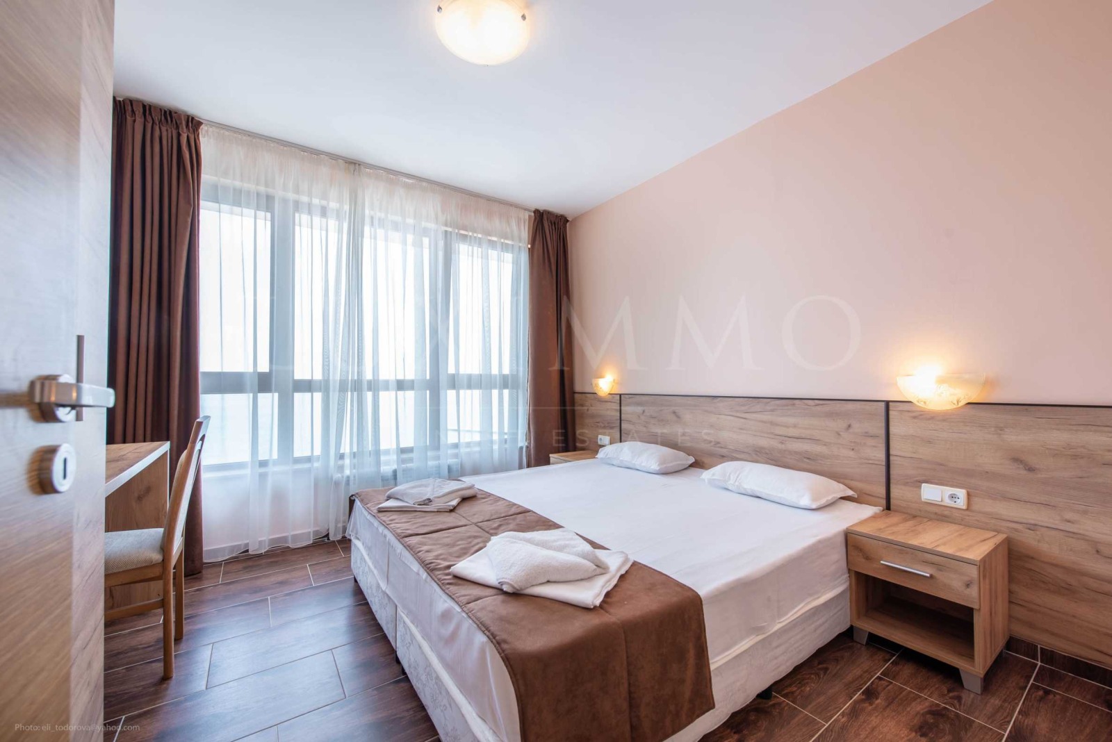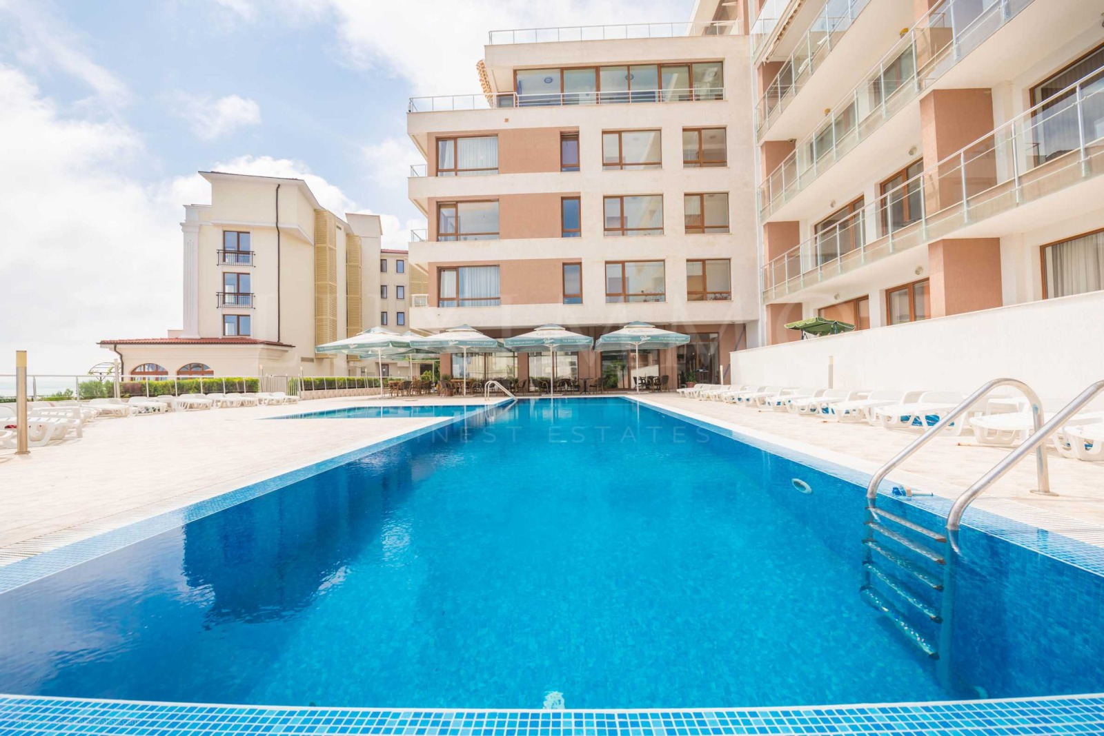 Апартаментът е разположен на седми етаж в затворен комплекс с басейн - Принцес Резиденс, на първа линия море.