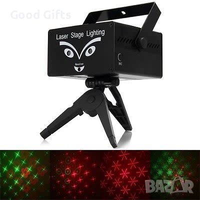 Мини Професионален лазерен проектор, Със статив, Вграден звуков сензор, Режими на осветление