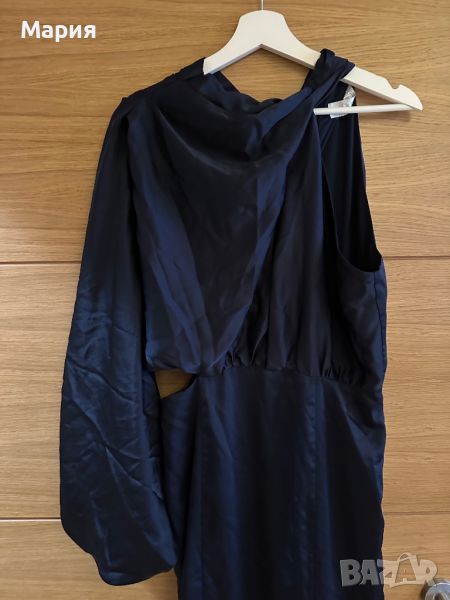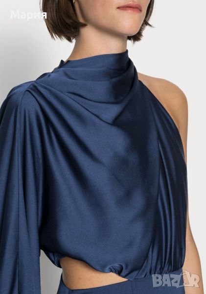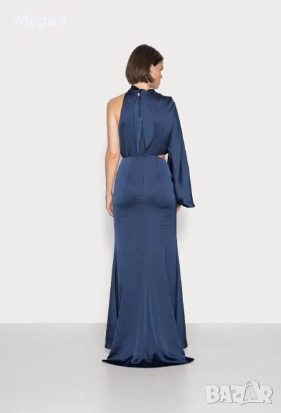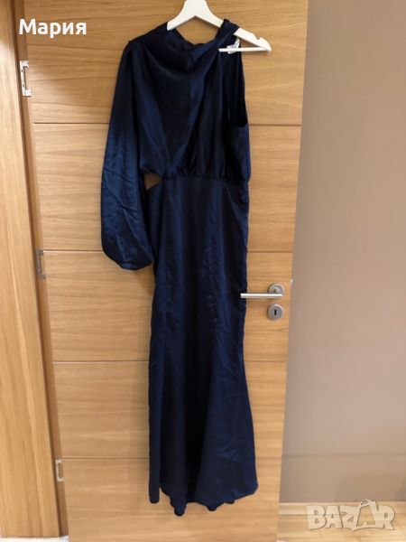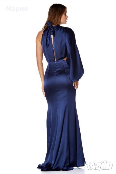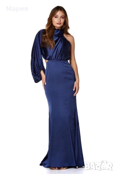 Бална / шаферска / официална сатенена рокля с един ръкав Jarlo. Размер 40. Реална цена в момента над 380лв. Цвят - navy (тъмно синьо)