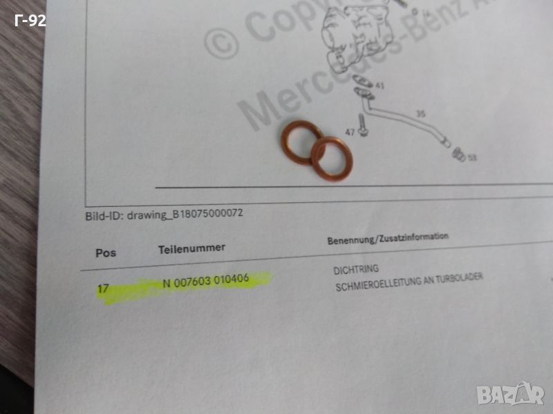 N007603010406**NEU**MERCEDES-BENZ**УПЛЪТНЕНИЕ НА ТРЪБАТА ЗА СМАЗВАНЕ НА ТУРБОТО** → Обява 45859080