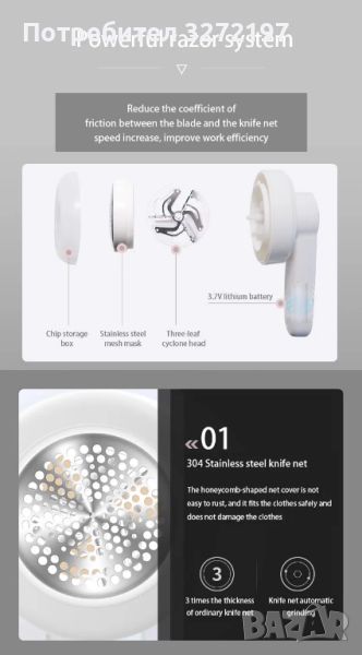 Машинка за почистване/пилинг на мъх и топчета от дрехи,USB зареждане