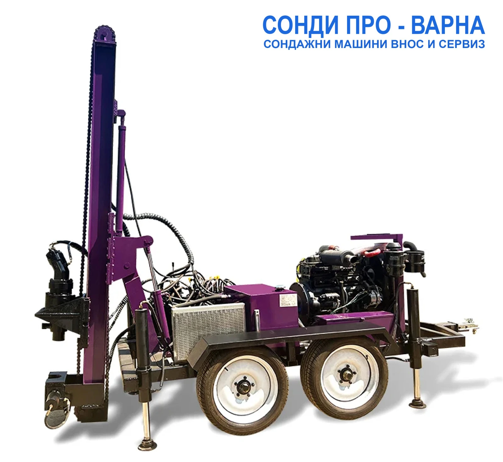 Ново Сондажно Професионално ремарке Car-250EC2Х2 до 250 метра /сонда за вода/ . ОСНОВНО ПРЕДНАЗНАЧЕНИЕ (1) Водно сондиране (Water Flush) → до 165- 170 м при Ø 80-100 мм (с кална помпа WD160 със собствен двигател) (2) Въздушно сондиране / DTH → до 135-140 м при Ø 80-100 мм (с компресор > 35 m³ /min) . Цената е с ДДС и гаранция 12 месеца! Производство и доставка по поръчка до 90 дена морско навло, може да се достави за 35 дена с влак плюс 1500 ЕВРО навло, актуална цена само при запитване на спедитор. . - За повече яснота и начин на ползване на
