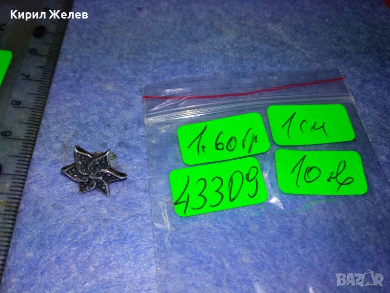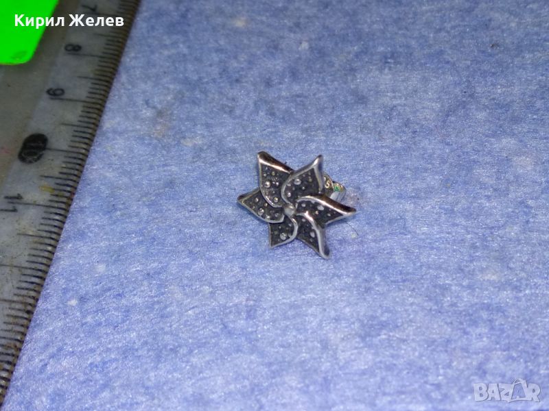 Красива флорална миниатюрна сребърна обеца оксидирано сребро 925 проба 43309