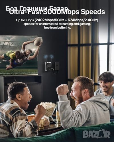 Двубандови скорости: 5GHz 2402Mbps + 2.4GHz 574Mbps