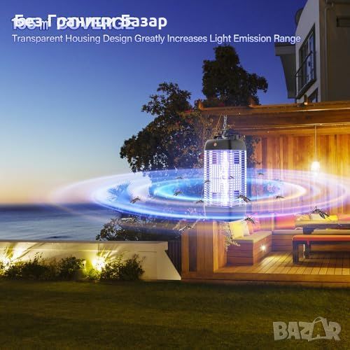 Широко покритие: Обхваща площ от 195 кв.м. (2100 кв.фута) с прозрачна обвивка за увеличен обхват на UV лъчите.