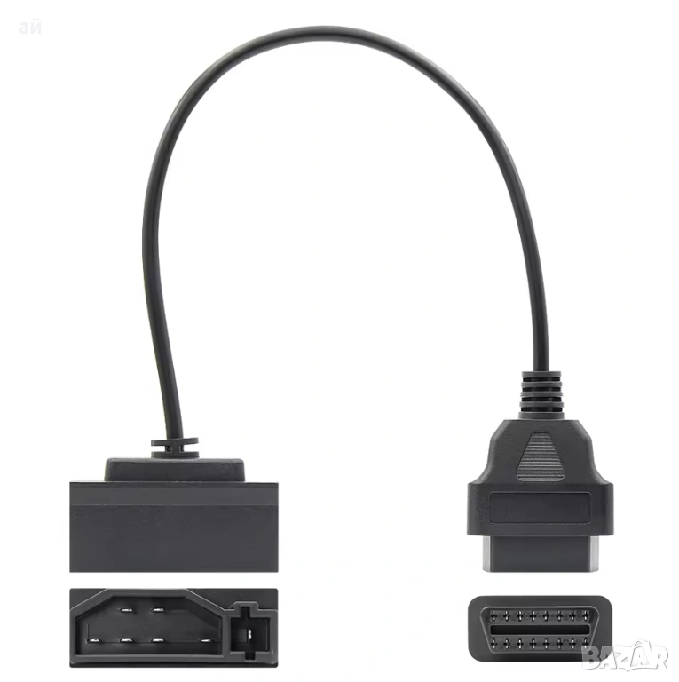Кабелът е лесен за свързване и не изисква допълнителна конфигурация или настройки. Просто включете преходника към автомобила и вашето диагностично устройство, за да започнете работа.