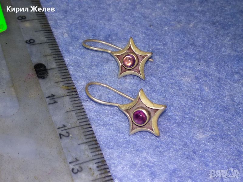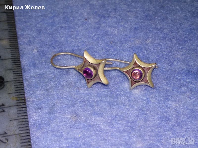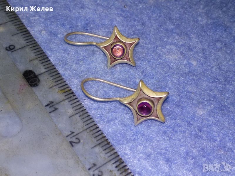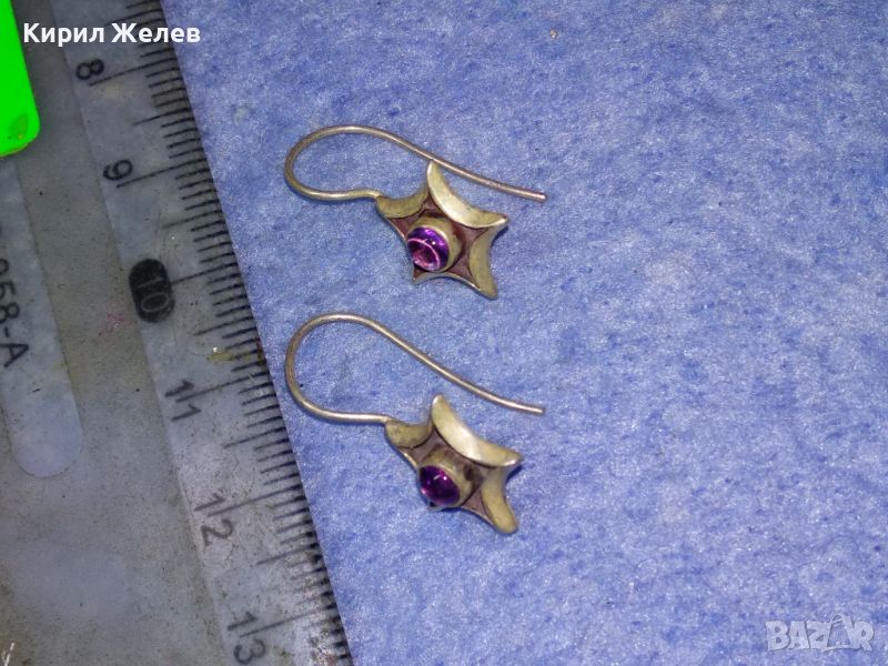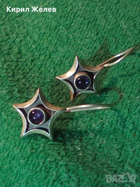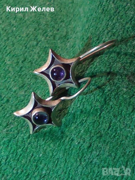 ЗВЕЗДОВИДНИ ВИНТИДЖ СКЪПОЦЕННИ СРЕБЪРНИ ОБЕЦИ СРЕБРО 925 ПРОБА с АМЕТИСТ 44420