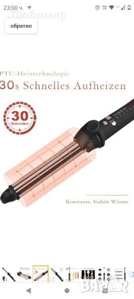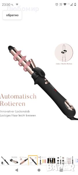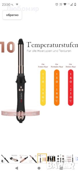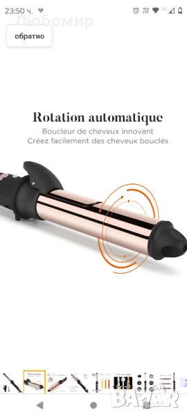 Въртяща се маша: с иновативната технология на въртене машата може да се върти в двете посоки чрез натискане на бутона. Оставете косата да се увие автоматично около машата. Без сложна операция всеки може лесно да създаде своите идеални къдрици и вълни с тази въртяща се маша.Цифров контрол на температурата: въртящата се маша с 10 регулируеми температурни нива от 120 °C до 210 °C, за всички типове и текстури на косата. Цифрова технология за контрол на температурата за постигане на постоянна и стабилна топлина, избягва прекомерното топлинно увреждане на косата.Титаново нано покритие: машата използва титанов нано материал, който има добра топлопроводимост и устойчивост на корозия, което прави нагряването по-ефективно, разпределението на топлината е по-равномерно, така че къдравата коса да се нагрява по-равномерно. И произвежда отрицателни йони, които са полезни за косата, правейки къдравата коса да изглежда блестяща и мека.Разширена функция: 3 контролируеми режима на въртене, гъвкави за създаване на къдрава коса. ② Бързо нагряване за 30 секунди. Постоянна и стабилна температура. ③ 60 минути автоматично изключване гарантира вашата безопасност. Универсално двойно напрежение (110-240V), машата за коса може да се използва във всяка страна.Професионален дизайн: 1 с LCD дисплей. Дизайн със скоба, захванете края на косата, за да затоплите косата по-добре. ③ Въртящ се на 360° кабел за оформяне без усилие. ④Готин съвет Изискана опаковка, с разнообразие от фризьорски аксесоари, е идеален подарък, за да изразите любовта си към любимия човек.
