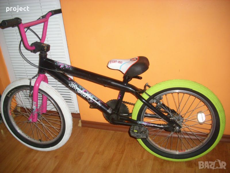 Професионален БМХ, BMX APOLLO,модел AWESOME .Атрактивен БМХ велосипед в перфектно техничeско и визуално състояние каран много малко и е много запазен каран само в паркове и градинки и не са извършвани трикове с него.Гуми 20x2,3 цола .Предна и задна спирачка .Всичко работи на 6 и в близките 2-3 години не е нужно нещо да се сменя по него.Велосипеда е подходящ за деца от 6-7г.или ръст от 120см. и нагоре Велосипед високо качество.