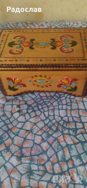 Българска пирографирана кутия от дърво . размери : 16 /10 / 7,5 см