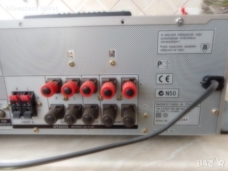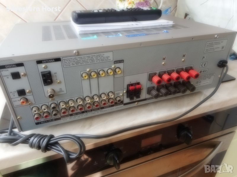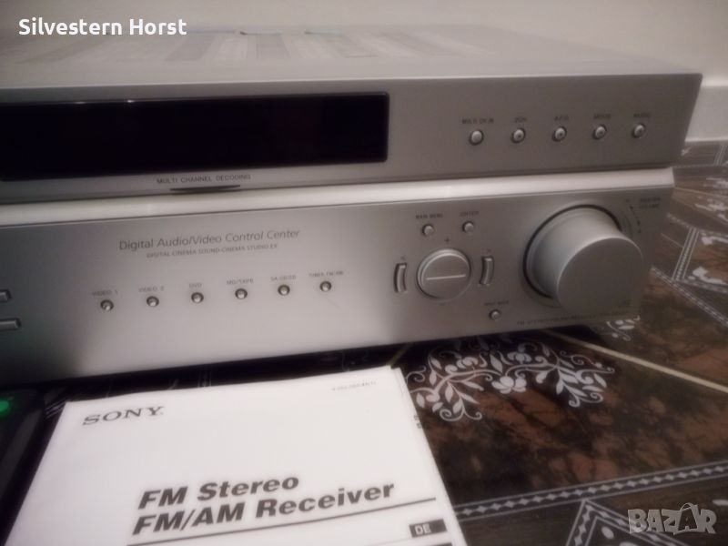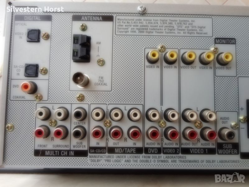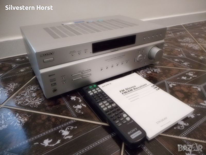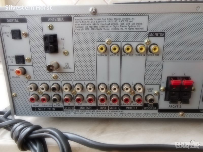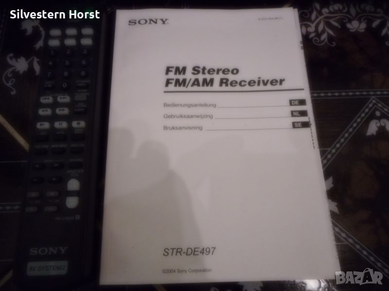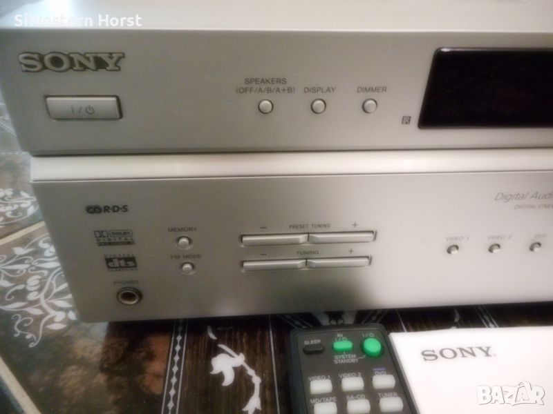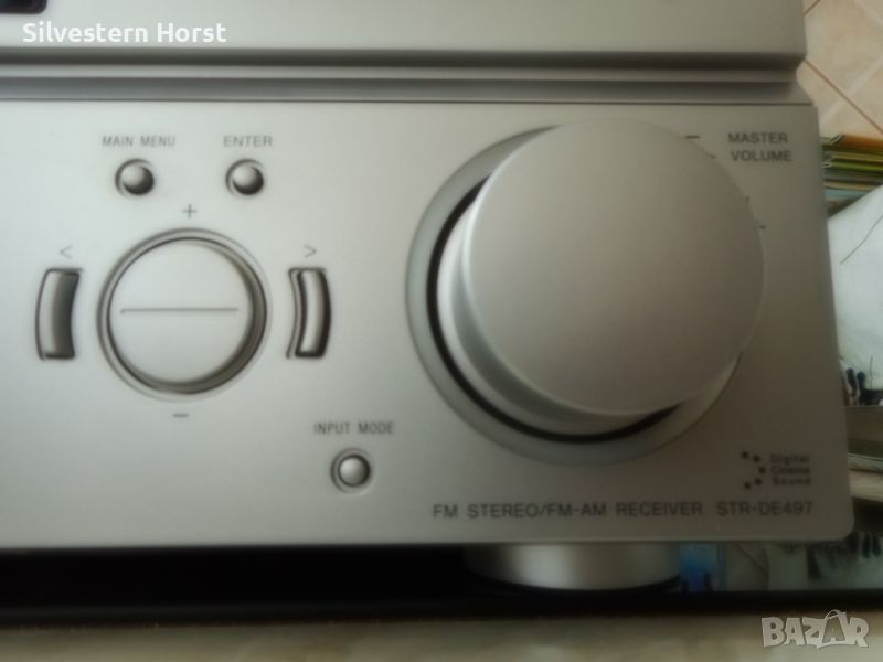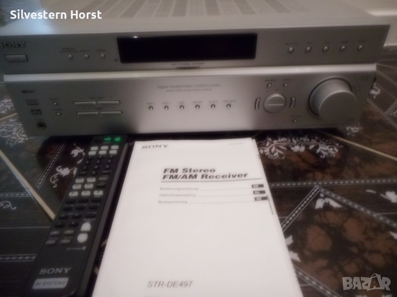сребърен приемник за домашно кино SONY STR-DE 497 предлага много от най-добрите компоненти на аудио технологията, налични в 7.1-канален приемник с висока мощност от 770 вата. Знаете, че този приемник е стъпка над останалите, тъй като включва всички най-нови цифрови декодери, конструкция за намаляване на топлината, XM-HD радио с Neural Surround и висок клас Motorola DSP двигател. VSX-816-S също така разполага с пет цифрови входа, четири S-video входа, лесна настройка и други. Включва предварително зададено LCD дистанционно управление за вашата система. 770W/високо качество на звука Това устройство разполага с 700 вата обща мощност за седем канала с усъвършенствани 192 KHz/24-битови цифрово-аналогови преобразуватели и 48-битов DSP двигател на Motorola, използван в най-добрите кина по целия свят. Dolby Digital, DTS, Dolby Pro Logic II, DTS-ES, DTS 96/24, Dolby Digital EX, DTS Neo:6 С много от най-новите цифрови декодери, това устройство има всичко необходимо, за да изведе производителността на домашното кино на следващото ниво. Автоматично MCACC (многоканално акустично калибриране) Осигурява лесна настройка и многоканална точност. Първо, той „слуша“ с предоставения микрофон за калибриране на стаята колко добре се „разбират“ вашите високоговорители и стая; след това прави настройки, за да гарантира, че звукът от всеки високоговорител достига до ушите ви по едно и също време и една и съща сила на звука Предни A/V, S-Video, оптични аудио входове За допълнително удобство, този приемник е оборудван с предни A/V входове S-Video и оптични аудио входове. Настройка на MCACC Многоканалната система за акустично калибриране на SONY използва микрофон, за да открие акустичната среда в стаята и след това да определи как правилно да настроите високоговорителите си за най-добро качество на звуковото поле. Среднощен режим на слушане Слушайте филми при ниска сила на звука, без да пропускате диалозите с удобния среднощен режим на слушане. HDTV съвместим Трикомпонентните видео входа и един изход предлагат висококачествена картина за DVD плейъри, HDTV и др. 5 цифрови входа Оптичните и коаксиалните цифрови входове ви позволяват да свързвате DVD плейъри и цифрови сателитни кабелни кутии. 30 AM/FM предварително зададени станции. Задайте ръчно любимите си станции или оставете приемника да го направи вместо вас, така че никога да не се налага да търсите. LCD предварително настроено дистанционно управление Включеното дистанционно управление е предварително настроено за използване с вашата система.