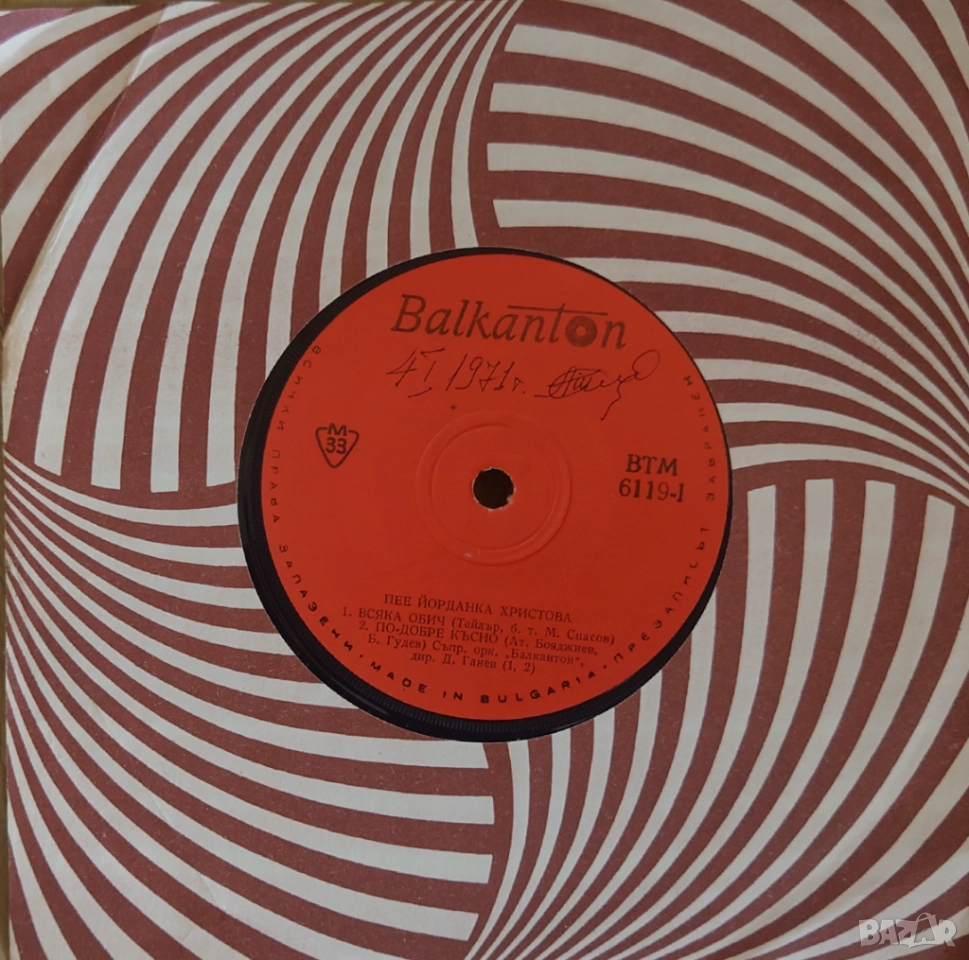 Йорданка Христова – Всяка обич 7" сингъл ВТМ 6119 в много добро състояние, с обложка. Цена 8.00 лева.