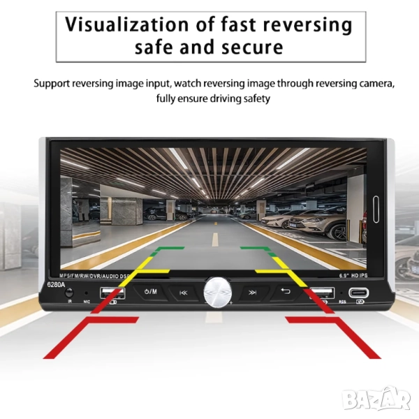 6.86” 1280*480 1-Din мултимедия с Android 13, RDS, RAM 4GB, 32GB ROM