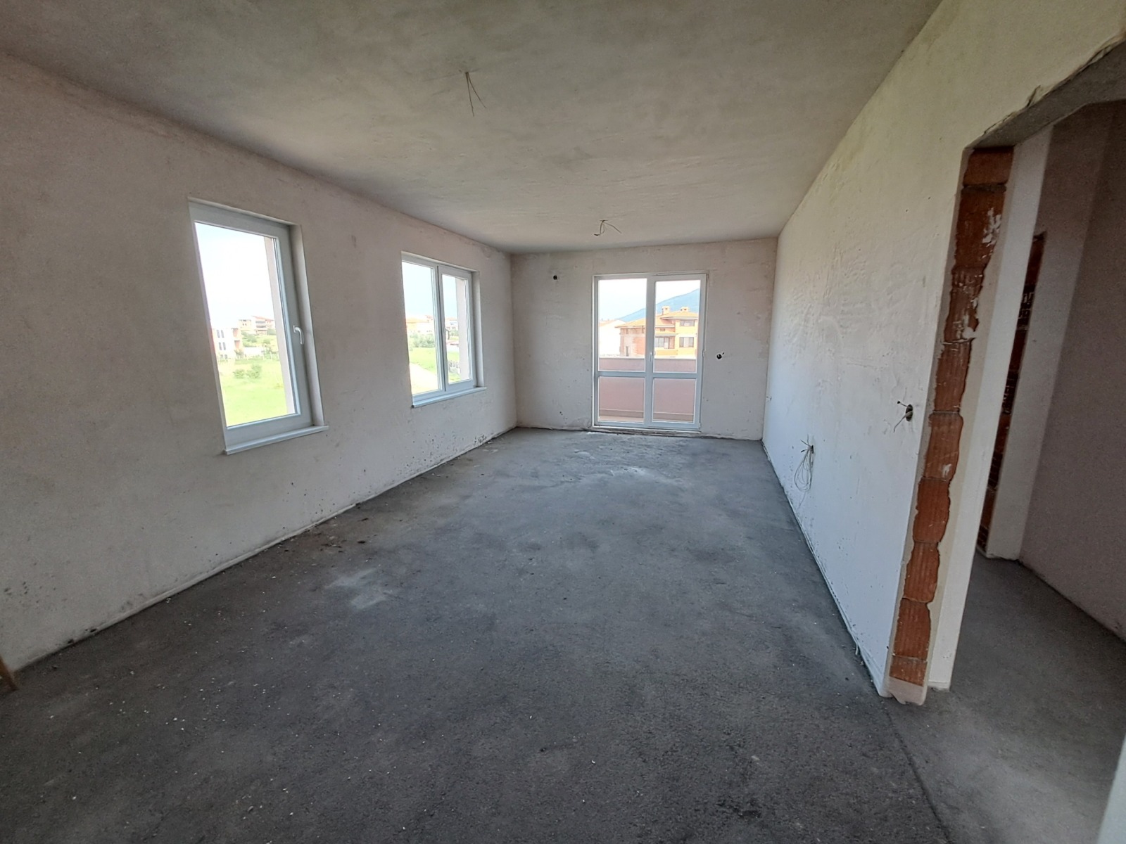 Предлагаме за продажба просторен тристаен апартамент, в новопостроева, напълно завършена и въведена в експлоатация сграда, находяща се в спокоен за живеене район на гр. Асеновград, близо до центъра. Жилището е разположено на пети етаж и се състои от входно антре, просторна дневна с кухненски бокс, две спални, две тераси и баня с тоалетна. Предлага се завършено до шпакловка и мазилка, с поставена петкамерна ПВЦ дограма и блиндирана врата. Прилежащо към жилището е избено помещение. Сградата е санирана с 10 см. топлоизолация, общите части са чисти и поддържани, наличен е хидравличен асансьор. Налични за продажба са и други апартаменти и гаражи в сградата.