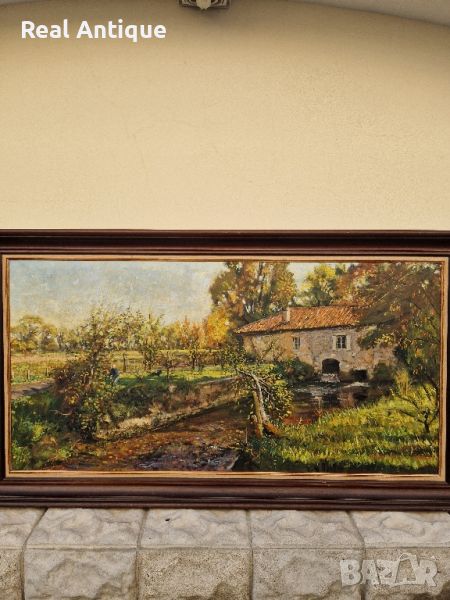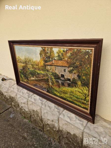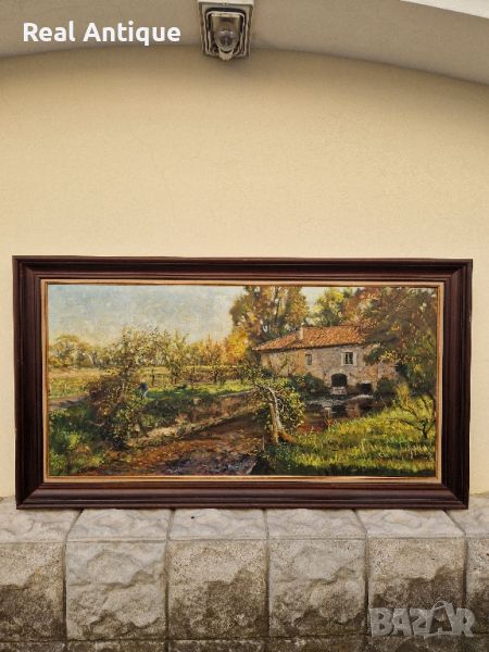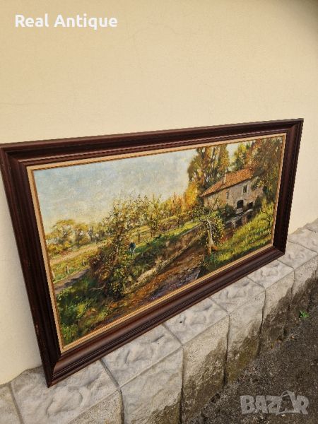 картина масло върху платно в много добро състояние без никакви забележки с масивна дървена рамка. Страхотна творба майсторска. Размер 125 см на 70 см. Чудесно допълнение към интериора на Вашия дом офис вила ресторант хотел. Подходяща и за подарък. Работя с всички куриери. Отговарям бързо. Възможен коментар на цената в рамките на разумното.