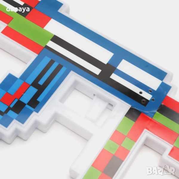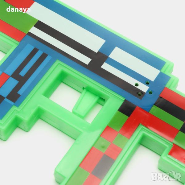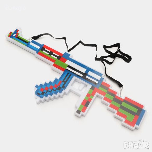 Реалистична пушка на любимата за децата игра Майнкрафт, която има и симулиращ ефект на светлина и звук. Тази картечница има визуална прилика с легендарния автомат Калашников, но външно е стилизирана като игра Minecraft. Автоматът идва в комплект с черен ремък с карабинери, за да може да я носите на рамо.