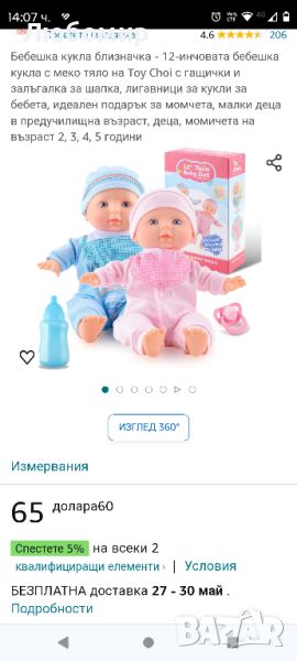 12-инчов двоен комплект бебешки кукли на Toy Choi, меко тяло с комбинезони и шапка, биберон, лигавници за бебешки кукли за момчета и момичета 2, 3, 4, 5-годишни малки деца.Комплект кукли близнаци: С 2 тоалета, 2 шапки, 1 бутилка мляко и 1 биберон, вашите прекрасни близнаци могат да обличат дрехите на куклите, както им харесва, както и да вдъхновят въображението им и да увеличат интимността на взаимодействието си, когато играят.Перфектен размер за малки деца: Този комплект кукли близнаци с идеалния размер от 12 инча при леко тегло, което позволява на малките ви ръчички да прегръщат, гушкат и носят меката кукла лесно и преносима, за да я вземете навсякъде.Тествани материали за безопасност: Материалът е безопасен, без BPA, по-безопасен за използване, куклите близнаци дават на вашето дете удобно докосване. Гладкият дизайн няма остри ръбове и няма да нарани вашето дете.Миещи се аксесоари за кукли: Избършете меката кукла с влажна кърпа и изперете нейните тоалети със сапун, така че бебешката кукла отново да стане чиста и издръжлива.Първи подарък за кукла бебе: Това е идеален подарък за близнаци за 2,3-годишни момичета и момчета в предучилищна възраст, за да се научат на практика и да придобият опит в грижата за бебето сами