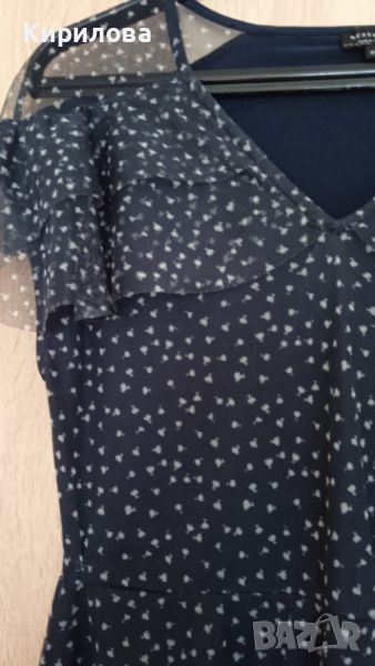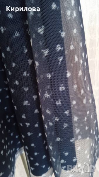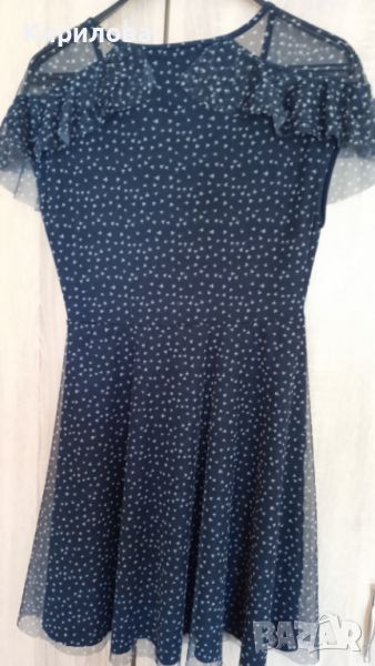Красива ефирна тъмносиня рокля за официален повод.Роклята е обличана за тържество само веднъж.размер XS,но може и на S да отговаря.