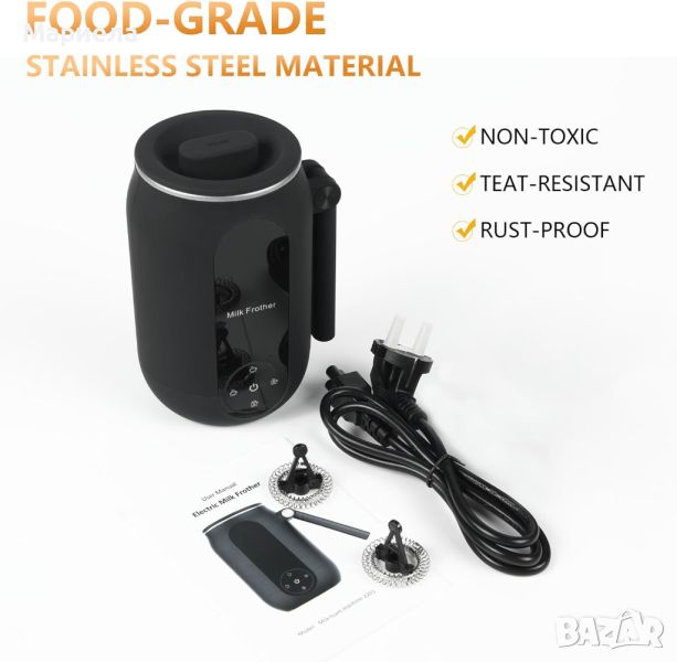 Изпитайте изключителна скорост и ефективност с нашият електрически уред за млечна пяна за мляко .Гладка пяна за секунди, което ви позволява бързо да се насладите на вкусно кафе.Нашият електрически пенообразувател не е ограничен само до млечна пяна, но също така позволява безпроблемно приготвяне на разнообразие от кафе и напитки като лате, капучино и горещ шоколад, задоволявайки вашите различни вкусови предпочитания.Проектиран с високоефективен електрически мотор, нашият пенообразувател за мляко осигурява стабилна способност за смесване, като същевременно поддържа тиха работа, което ви позволява да се наслаждавате на тихо и спокойно разпенване у дома.Пенообразувателя е лесен за употреба - с едно докосване, което го прави лесен за стартиране и спиране дори за хора без предишен опит в приготвянето на кафе.Има интелигентен контрол на температурата и автоматична защита срещу прегряване и късо съединение .Този пенообразувател за мляко гарантира вашата безопасност, като предотвратява проблеми с прегряване, осигурявайки безпроблемно изживяване при разпенване.Покритието е незалепващо , което гарантира бързото и лесно почистване на уреда .Изработени от висококачествена неръждаема стомана и солидна конструкция, нашите автоматични пенообразуватели за мляко не само изглеждат стилно, но и предлагат дълготрайна издръжливост, поддържайки отлична производителност дори при продължителна употреба.Към него има 2 комплекта приставки за разпенване .Дръжката се прибира за удобно и компактно съхранение .