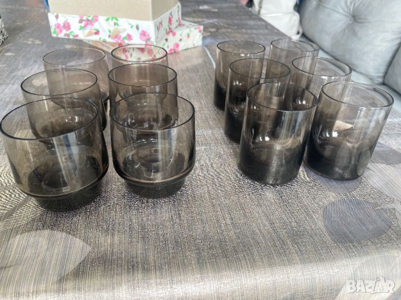 Чаши стъклени кафяви цената е за 6 броя . Единият комплект е по конусовиден другият е по заоблен на дъното