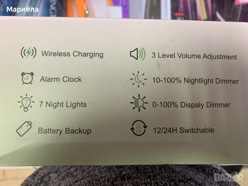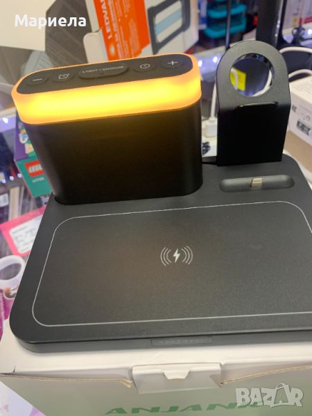 Ергономичен дизайн и функция на станция за зареждане за устройства на Apple за телефон, AirPods, iWatch Зареждане + Цифров будилник +7 цвята за нощна светлина , които можете да димирате .