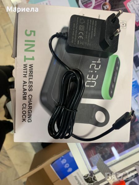 Безжична станция за зареждане-5 в 1 / Стойка за безжично зарядно устройство с будилник