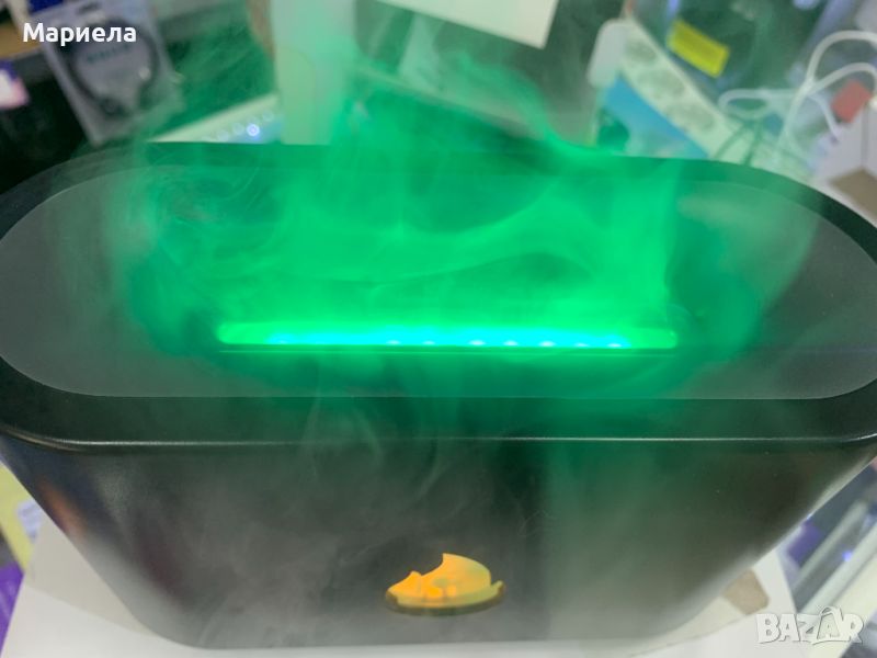 Към него има дистанционно управление от което можете да изберете цвят , да изберете уредът да изпарява или само да свети и да настройвате таймер за изключване .