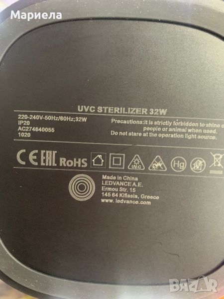 LEDVANCE ULTRAVIOLET AIR SANITIZER e UVC лампа за дезинфекция на въздуха, без да отделя озон. Характеризира се с отложен старт 27s и вграден микровълнов датчик за движение за максимална безопасност, при използване.