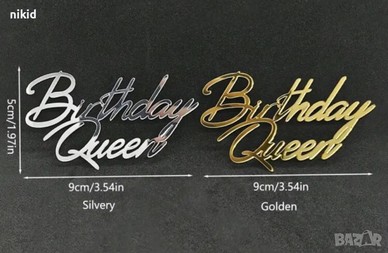 Birthday Queen сребрист златист надпис акрил топер декор украса за торта рожден ден кралица → Обява 45877109