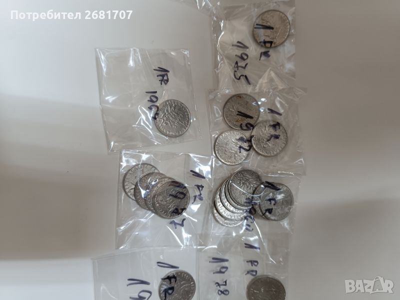 Монети 1 Франк Франция. Има различни години, 25 броя. Цената е за всички.
