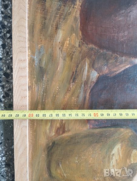 Масло на картон каширан на шперплат.В дървена рамка,надпис на гърба.