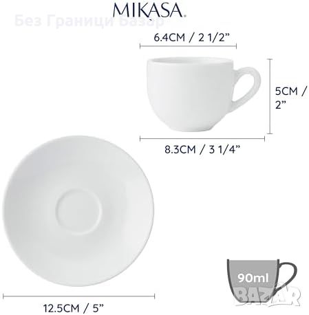 Нов Стилен комплект порцеланови еспресо чаши и чинии - 2 броя, 90 мл