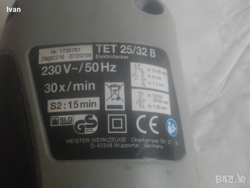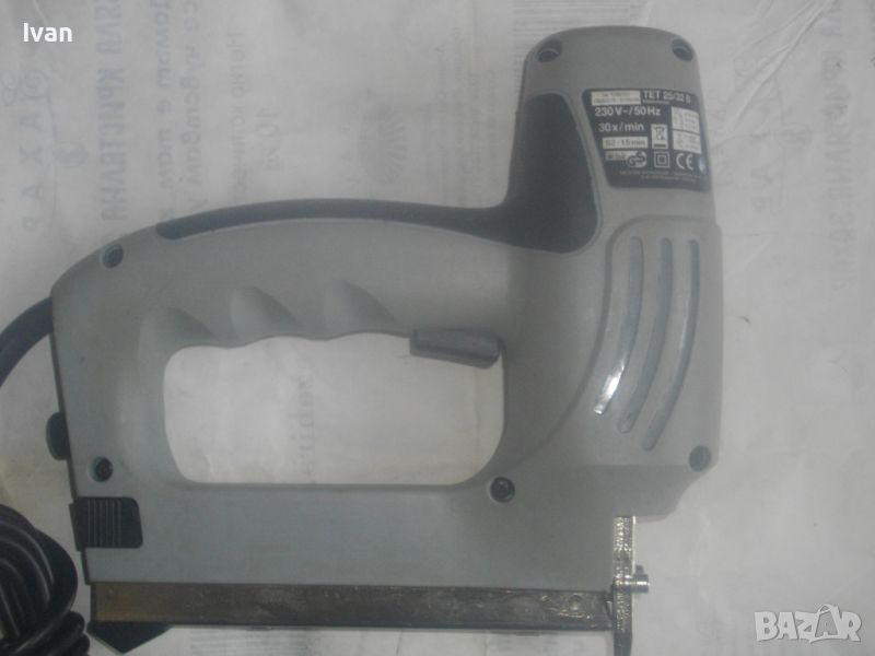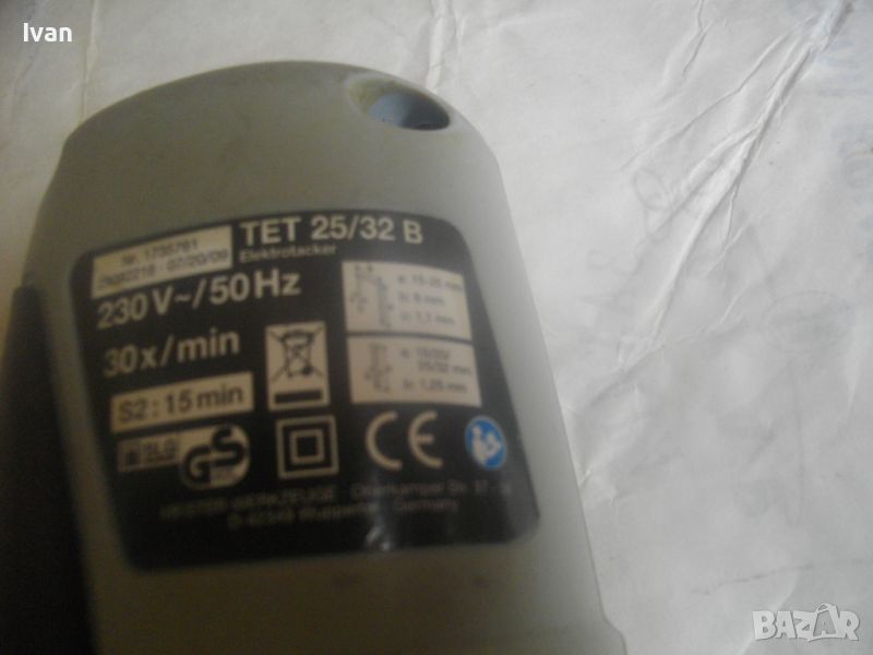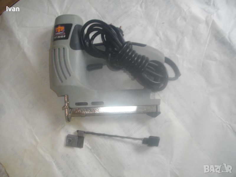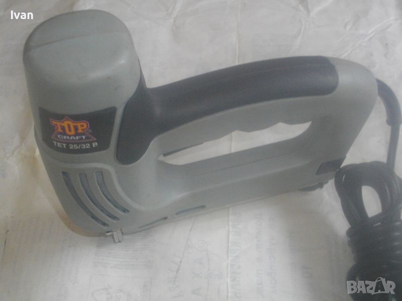 Почти нов/ като нов/ трудно различим от нов голям, масивен немски оригинален професионален електрически такер-дърводелски/тапицерски - комбиниран за големи консумативи /скоби пирони до 25-32 мм/. Такера е без фабричната си опаковка. В отлично техническо и работно състояние. Марка и модел - Top CRAFT TET 2532 B