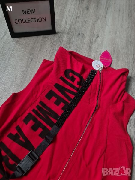 НОВ жесток дамски елек в червен цвят с висока яка на намаление. УНИКАЛНА кройка,на различни дължини. Може да се носи и с висока яка. Леко ватиран. По етикет е XS/S,но поради свободната си кройка е подходящ и за по-големи номера. Изпращам с преглед и тест преди заплащане.
