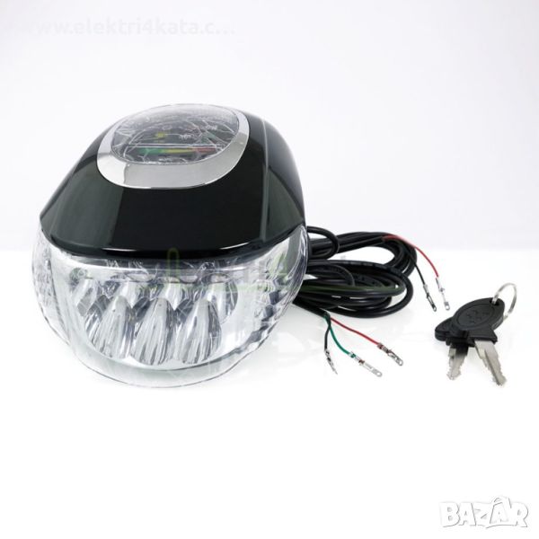 Фар за електрически скутер Citycoco (60V) е подходящ за електрически скутери включително Citycoco, триколки и други модели работещи с напрежение от 60V. Фарът има вграден ключ за контакт и панел за показване на информация например нивото на заряд на батерията. Разполага с вграден клаксон и индикатор, който показва кога фарът е включен. Благодарение на обновената светлинна технология фарът ще ви предостави силна светлина, когато ви е необходима.