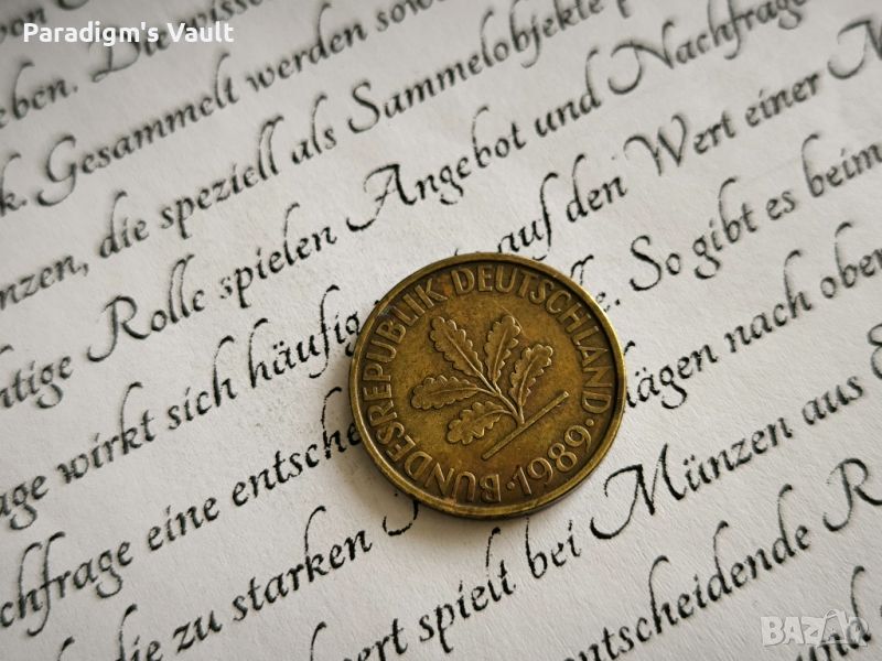 Монета - 10 пфенига от 1989г.; серия J