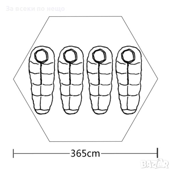 Вътрешен кът за спане: 300 х 300 cм (Д х Ш)