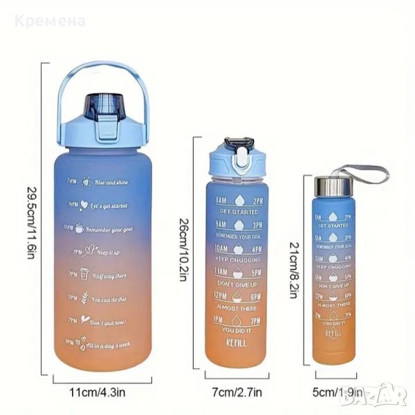 Комплект от 3 броя мотивационни бутилки за вода, 500мл, 900мл, 2л