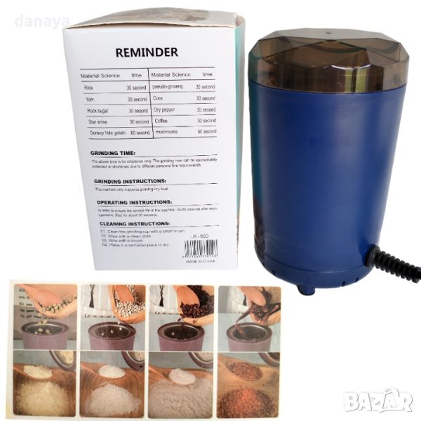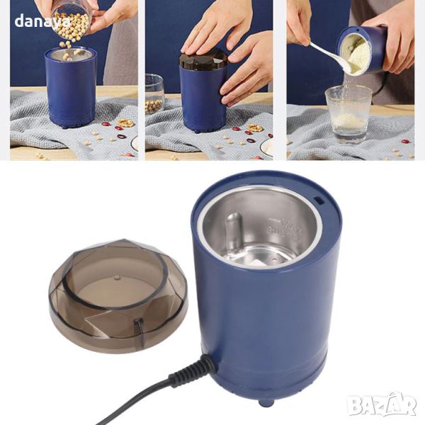 Електрическа мелачка за семена, кафе, ядки, ориз, леща и други сухи продукти. С нея лесно и бързо ще смелите всичко, което ви е необходимо като кафе, ядки, семена и още много други сухи продукти!