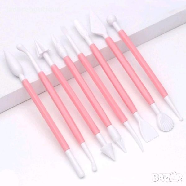 8 броя инструменти, 16 вида накрайника. Всеки инструмент има по два различни накрайника за моделиране на различни фигури.