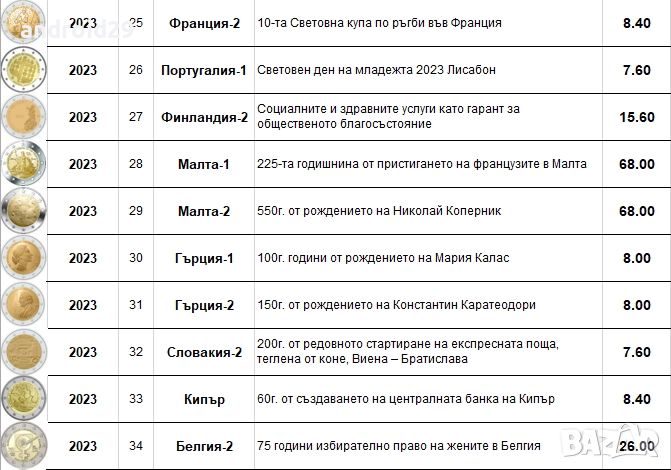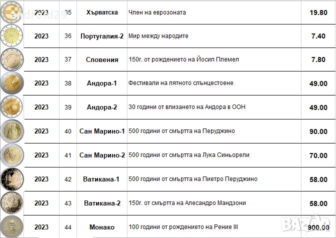 2023 35 Хърватска Член на еврозоната 27.80лв